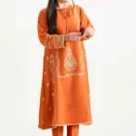 Radiate timeless grace in this exquisite beige three-piece suit, meticulously crafted for the winter season. The embroidered paneled shirt features a delicate round neckline with elegant embellishments, lace accents on the front, and intricate sleeve detailing. Paired with pintuck-detailed trousers and a soft khaddi dupatta, this ensemble offers a harmonious blend of traditional embroidery and modern sophistication, perfect for weddings, festive events, or special occasions.